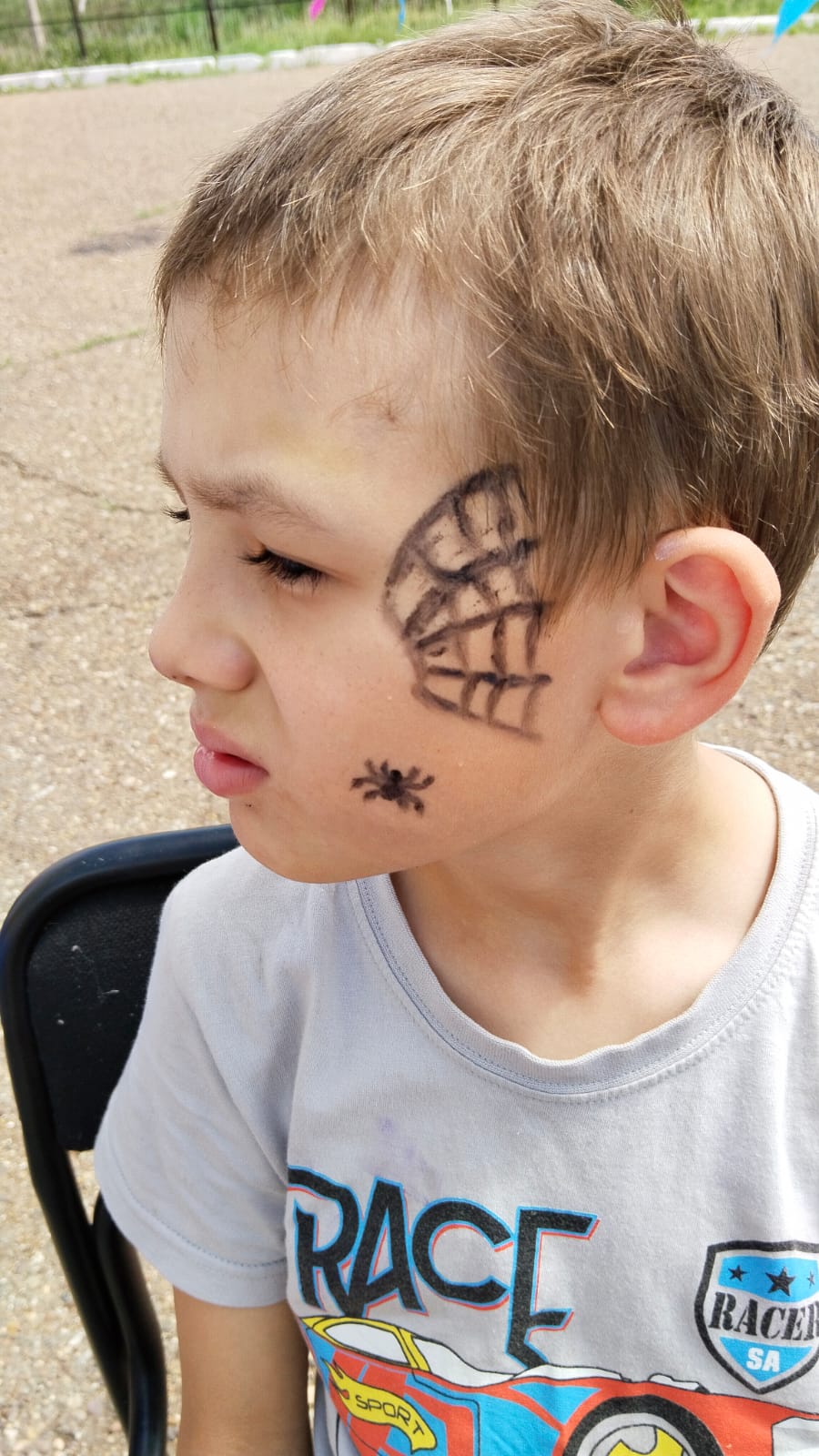 В рамках развлекательно — игровой программы «Страна детства» организованной Ново-Барятинским сельским домом культуры межпоселенческой центральной библиотекой была организована площадка подвижных игр и аквагримом.