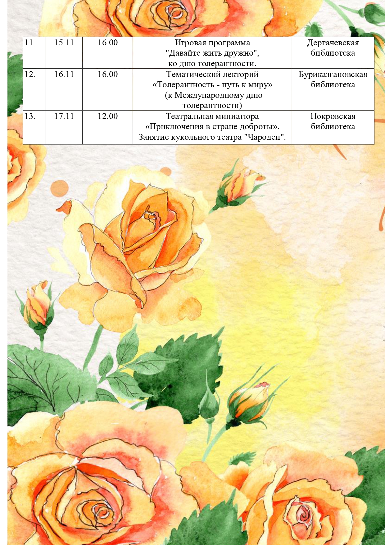 • План мероприятий ЦОД Рощинской модельной библиотеки