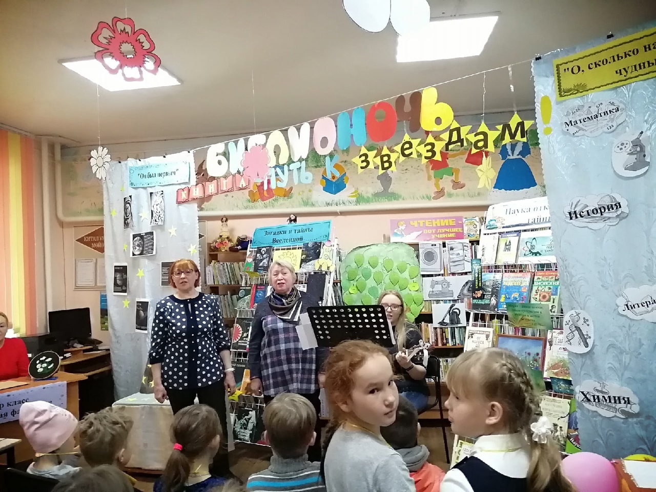 В Межпоселенческой центральной детской библиотеке состоялась онлайн-трансляция творческо-познавательной программы «Книга – путь к звездам». Вниманию участников также была представлена литературно-игровая программа «О, сколько нам открытий чудных…»,где все с интересом приняли участие в увлекательной викторине с вопросами из разных областей науки, пробовали провести разнообразные опыты, познакомились с книжными выставками «Наука открывает тайны»и»Загадки и тайны Вселенной».