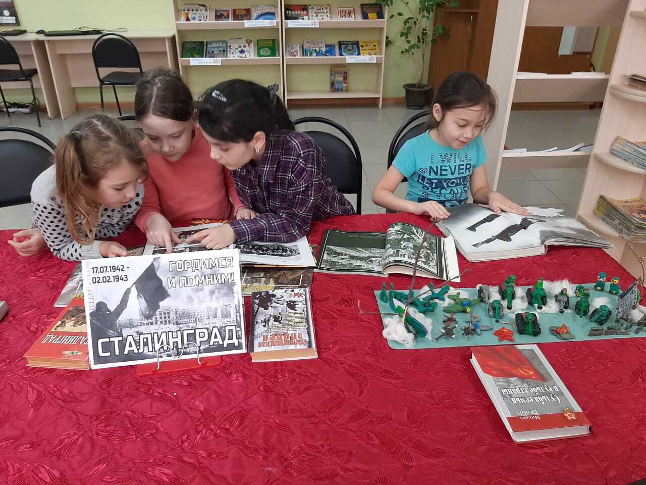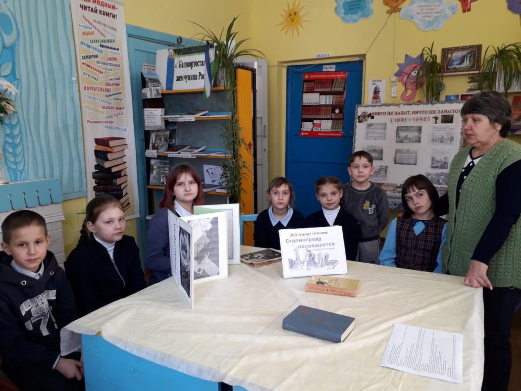 Услыбашевская библиотека подготовила видеопрезентацию «Сталинград – бессмертный город, воин, патриот», в Чуртановской и Константиноградовской библиотеках состоялись громкие чтения с детьми «Сталинград в художественной литературе», исторический экскурс «Битва за Сталинград» провела Куганакская библиотека, а дети сделали поделки из пластилина «Сталинградская битва» и другие.