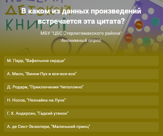 ???В рамках недели детской и юношеской книги предлагем всем желающим пройти небольшой опрос. Нужно прочесть отрывок из известной книги, которую мы все читали в детстве, и вспомнить название произведения по цитате: