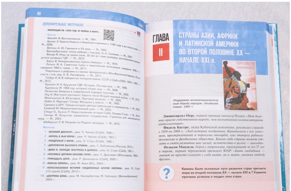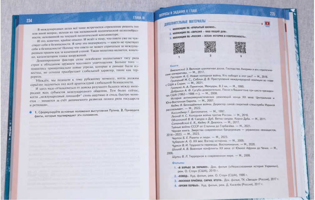 С 1 сентября в нашей стране старшеклассники начнут изучать историю по новым учебникам, которые состоят из четырёх томов. «История России» для 10-го класса охватывает период 1914–1945 годов, «История России» для 11-го класса рассказывает о событиях с 1945 года по настоящее время и, соответственно, два тома по всеобщей истории для 10–11-х классов. Учебники имеют QR-коды и ссылки на архивные материалы, другие необходимые источники информации. Теперь у каждого ученика есть возможность не просто изучить тот или иной параграф, но и обратиться к документальному источнику или архивным материалам.