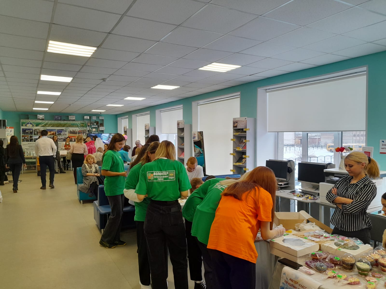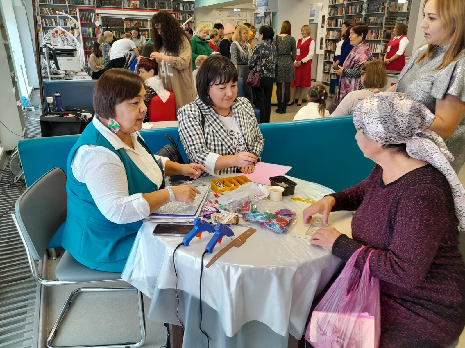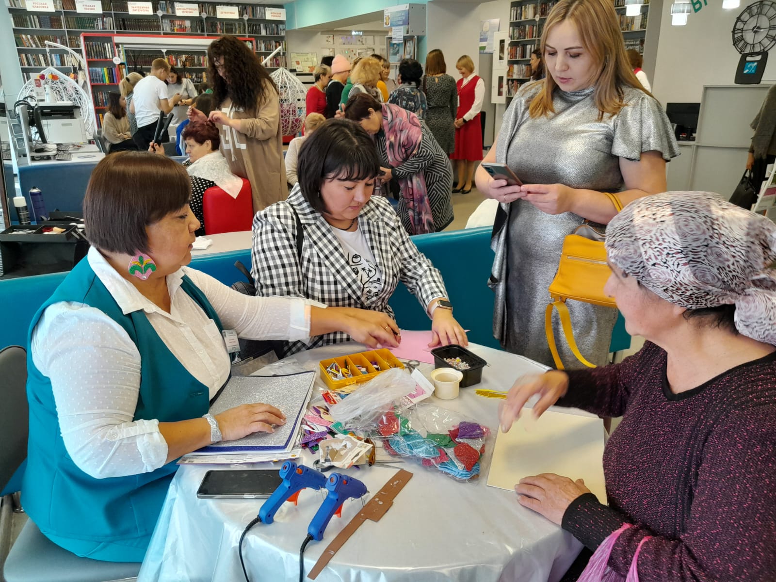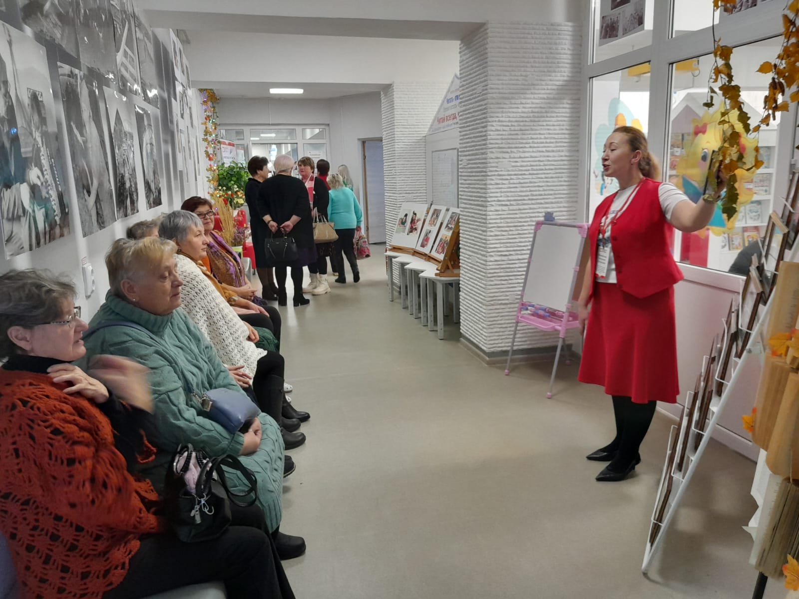На первом этаже для всех приглашённых работала «Патриотическая площадка», на которой разместились различные тематические пространства – площадка по плетению маскировочной сети, письмо солдату — можно было написать письмо солдатам, которые находятся сейчас в зоне проведения СВО, мастер — класс «Берегиня». Работали также площадки: консультации специалистов по санаторному лечению, социальные педагоги, нотариусы, юристы, представители банка, МФЦ, Опека, Государственный фонд поддержки участников СВО «Защитники Отечества».