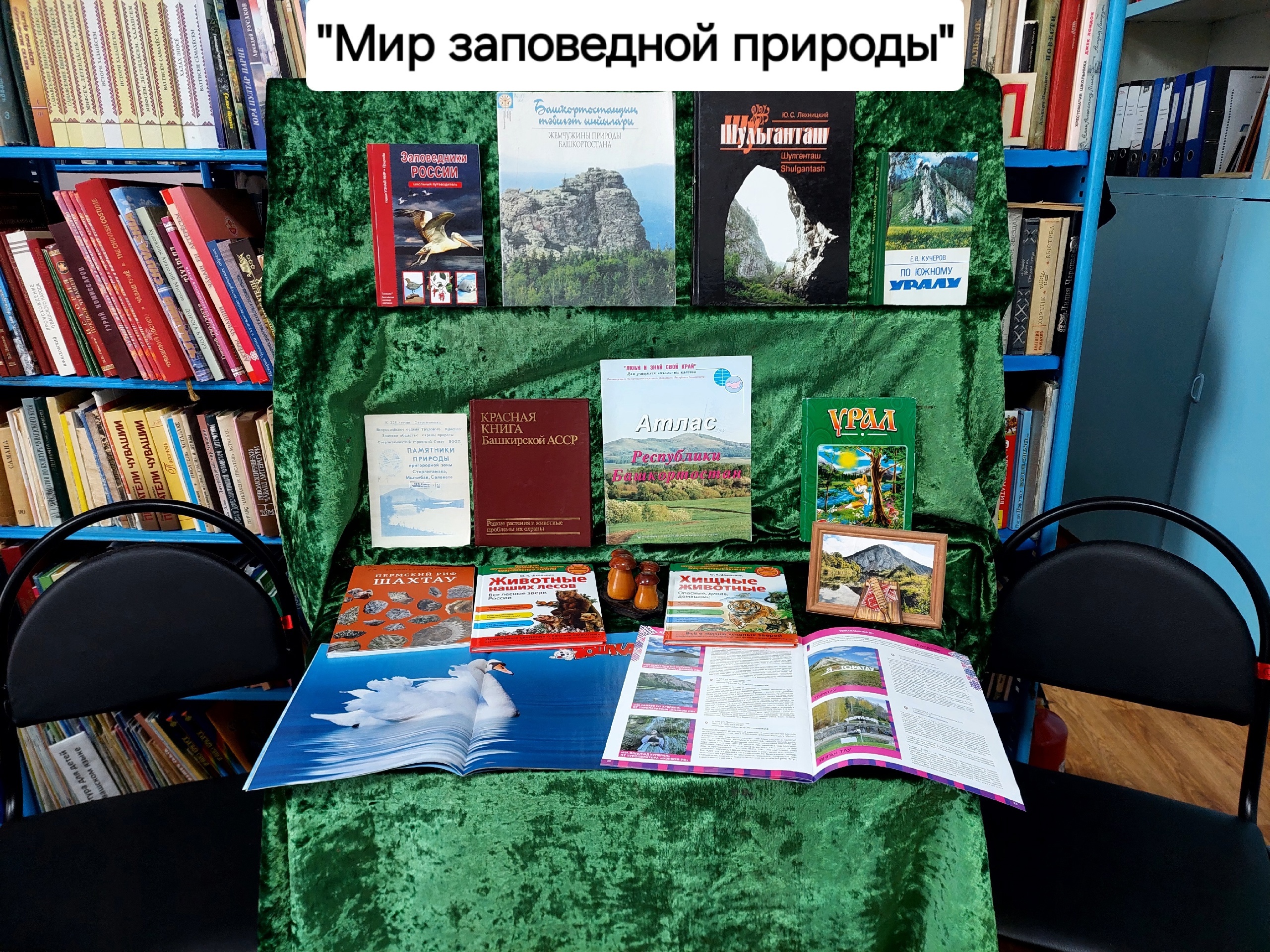 В Услыбашевской библиотеке оформлена книжная выставка «Мир заповедной природы». На ней представлена литература о заповедниках нашей страны, растениях и животных, нуждающихся в охране или занесенных в Красную книгу. Выставка также познакомит пользователей с краеведческой литературой о заповедных местах нашей республики.