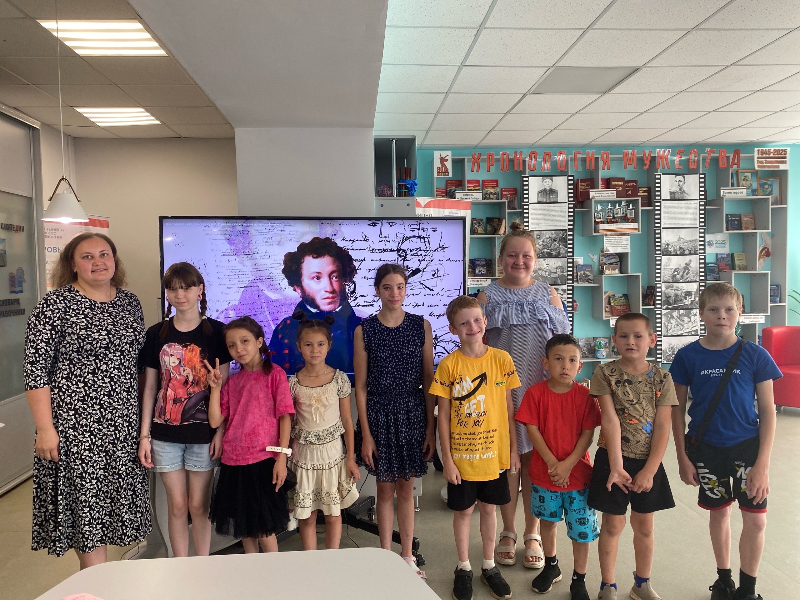 Особое место в нашем литературном путешествии заняли сказки великого Александра Сергеевича Пушкина. Из самого Лукоморья, по волшебному зеркалу с нами связался Кот Ученый, чтобы показать видео отрывки своих сказок. Золотая рыбка, царь Салтан, Царевна-Лебедь – все они словно ожили в стенах нашей библиотеки, подарив детям незабываемые впечатления.