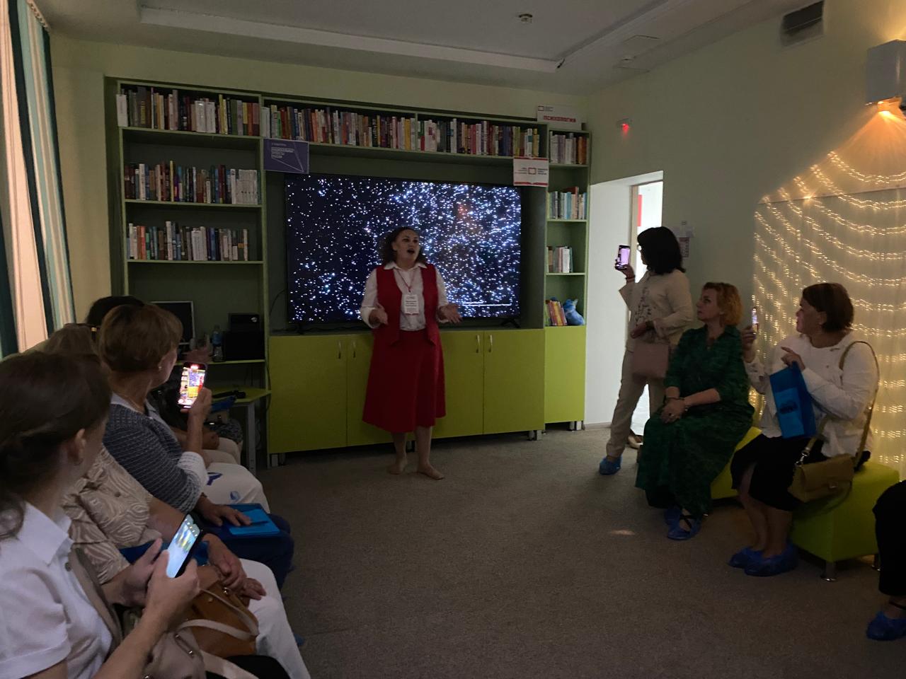 Сотрудники Наумовской модельной библиотеки нового поколения провели для участников семинара обзорную экскурсию по библиотеке, ознакомили с многочисленными её зонами, книжным фондом, интерактивным оборудованием и рассказали о технических возможностях модернизированной библиотеки. Робот Наум – главный помощник библиотеки, с удовольствием отвечал на вопросы гостей и предсказывал им судьбу.