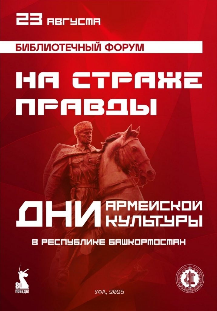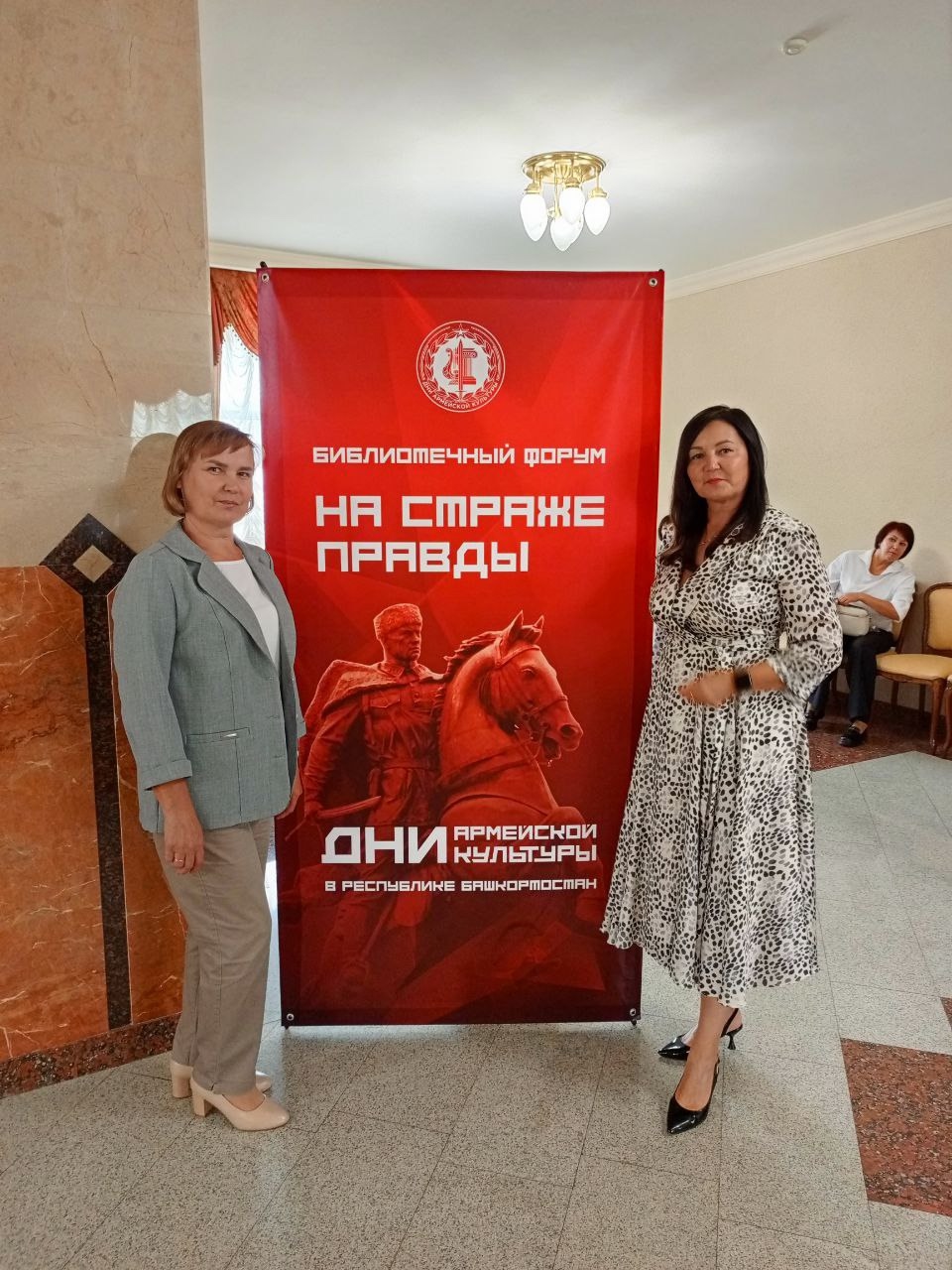 В рамках Дней армейской культуры в Уфе 23 августа прошел библиотечный форум «На страже правды», в работе которого приняли участие начальник Управления культуры Стерлитамакского района Григорьева И.А. и заведующий методического сектора Межпоселенческой центральной библиотеки Сидорчева Е.А.