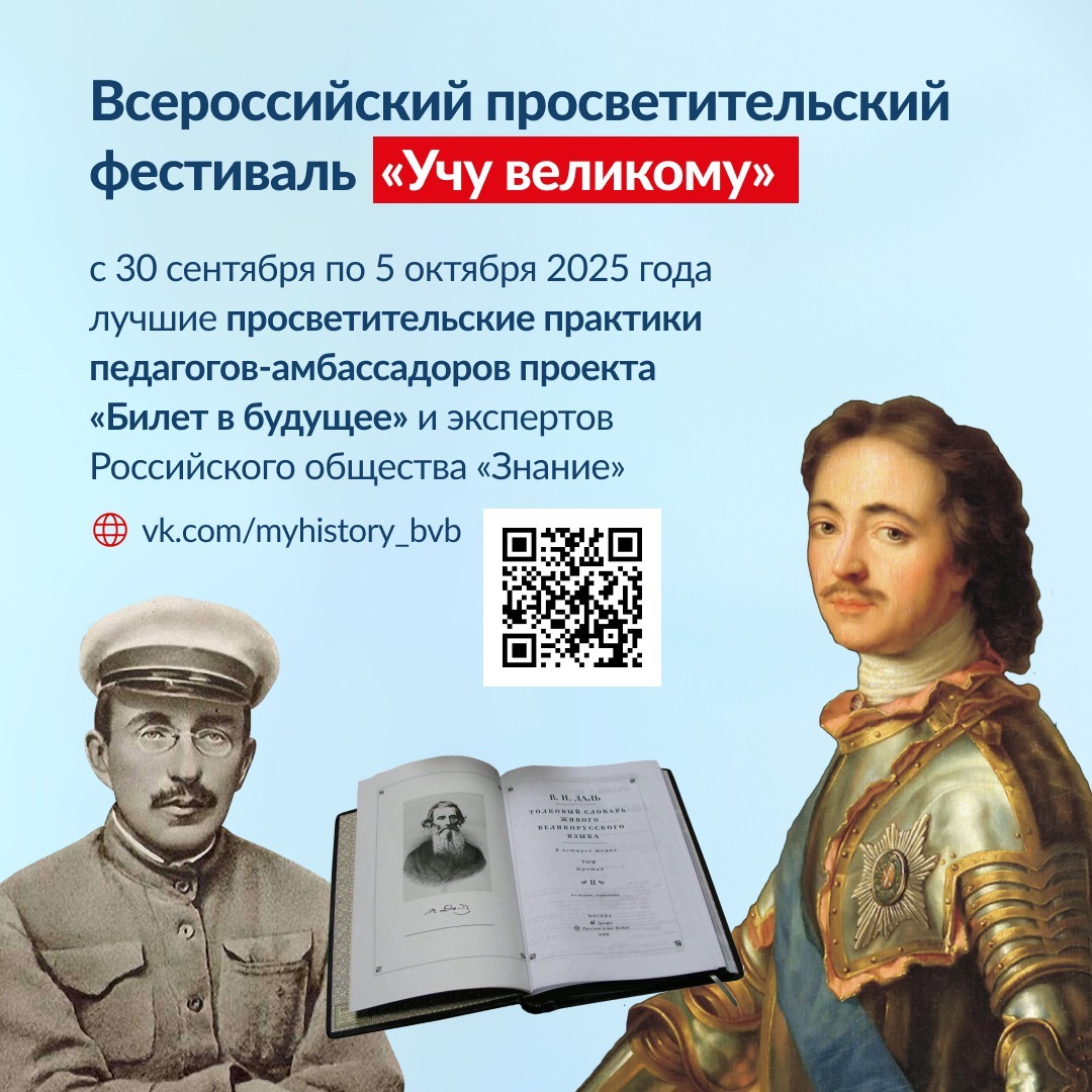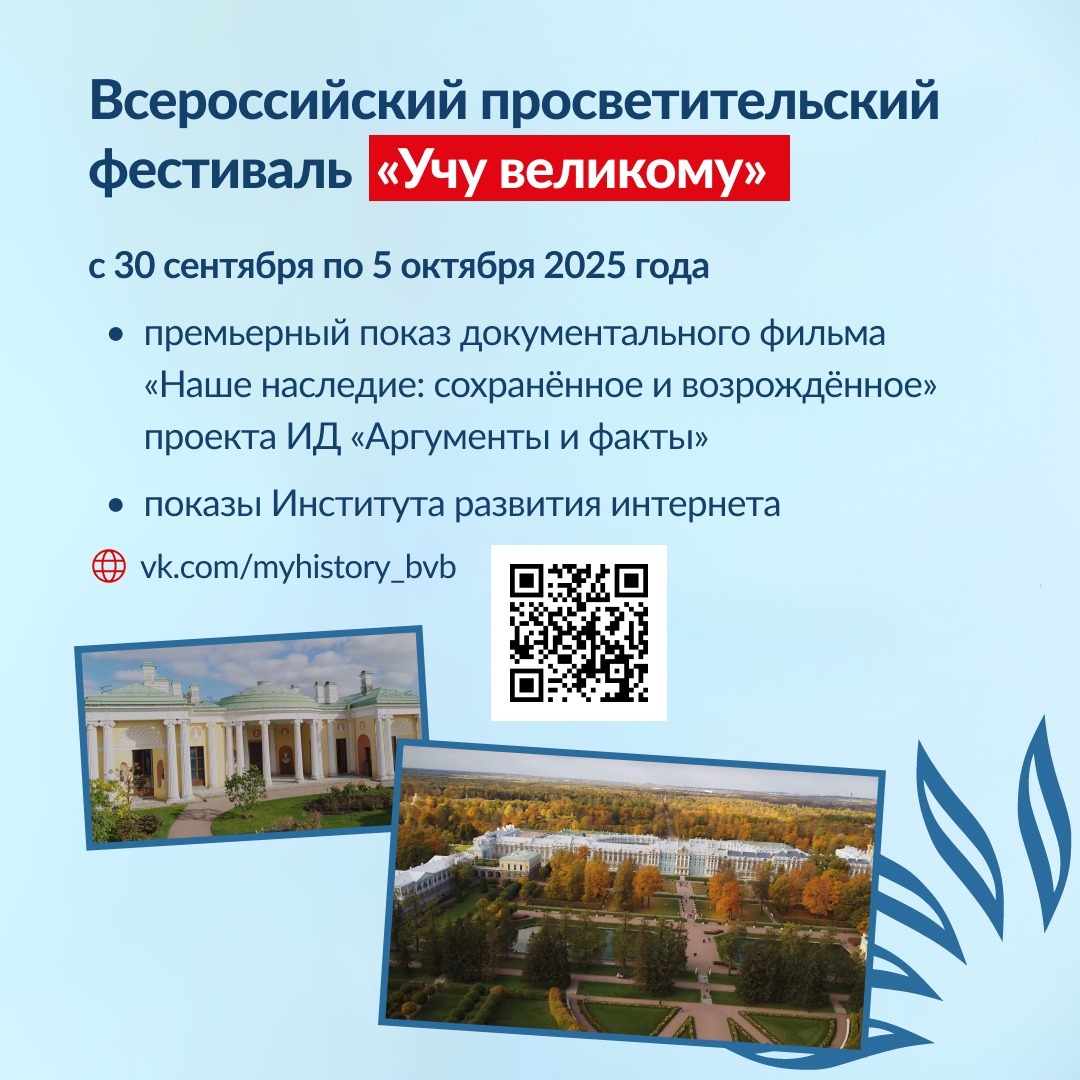 Всероссийский просветительский фестиваль «Учу великому» – в мультимедийных исторических парках «Россия – Моя история» в честь Дня учителя.