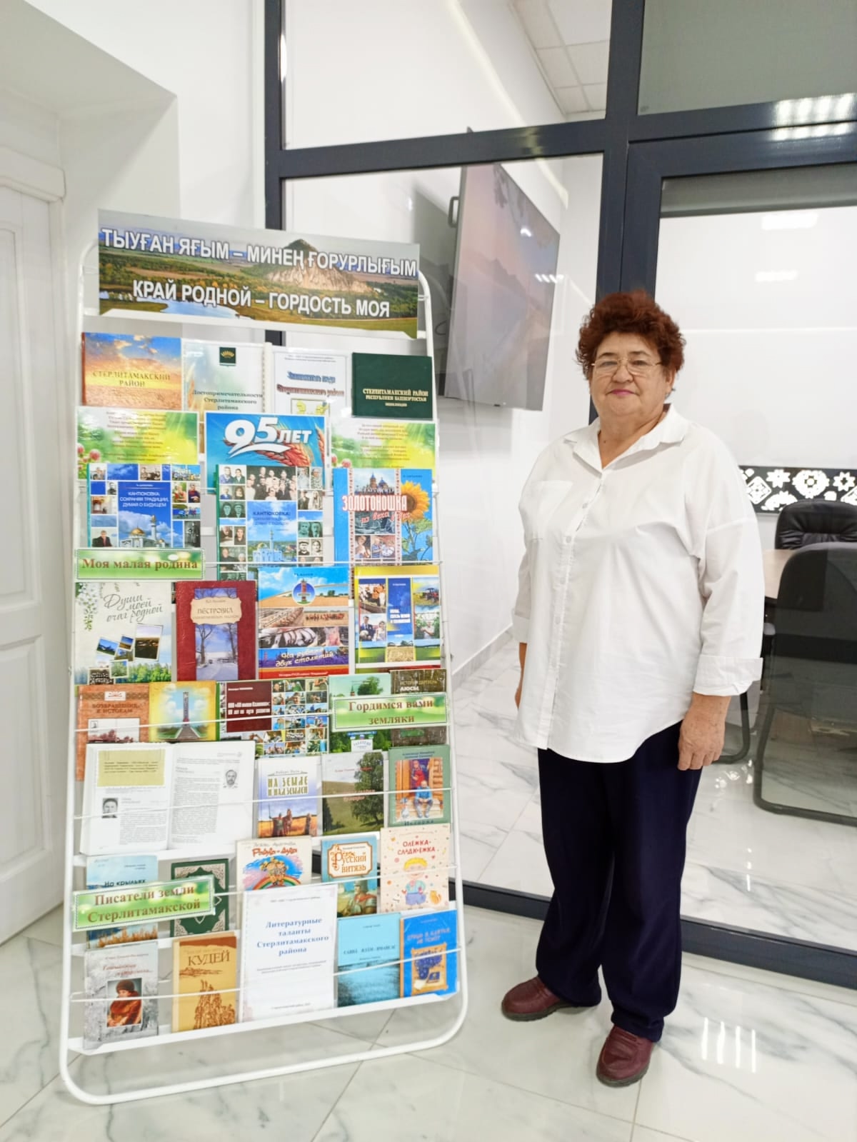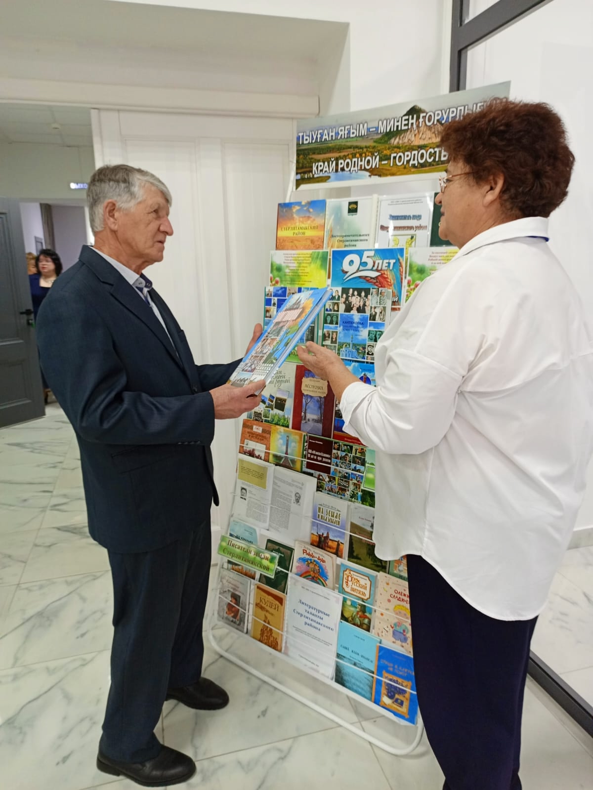 1 октября библиотечные работники на районном празднике, посвященном Дню пожилого человека провели презентацию книжной выставки «Край родной – гордость моя». К вниманию участников мероприятия были представлены издания по истории района, знаменитых земляках, населенных пунктах, писателях и поэтах – уроженцах Стерлитамакского района.