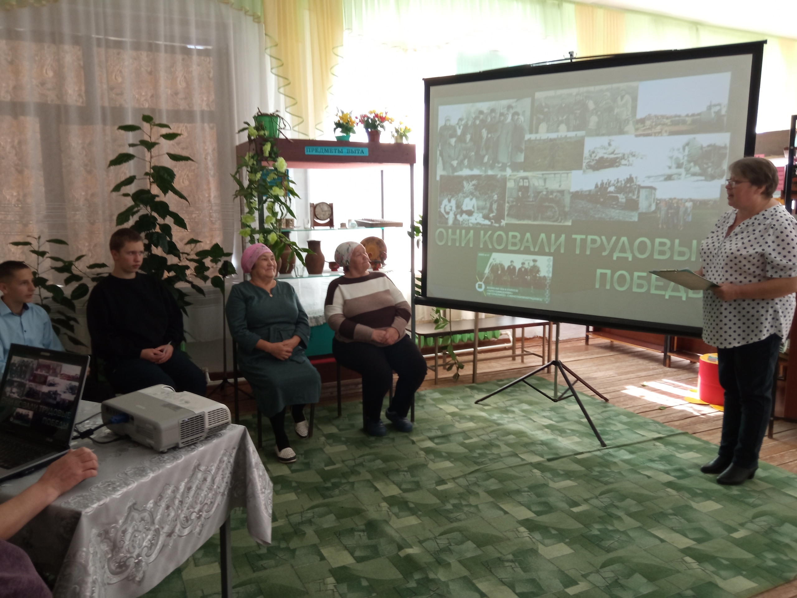Ведущий библиотекарь Федорова И.Н. рассказала ребятам о становлении колхозов, о первых председателях, о трудовых подвигах односельчан. Ведь у нас, в Константиноградовке не мало людей награжденных за труд. Ребята познакомились с трудовой биографией Киссер Романа Эдуардовича, которому был вручен Орден Ленина за выполненные Социалистические обязательства по отаре овец. Ребята услышали биографию Трифонова Василия Гавриловича получившего Ордена Трудовой Славы 2 и 3 степени за вспашку полей.