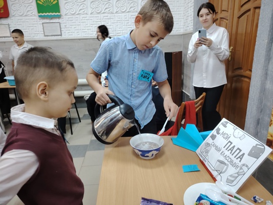 На тематическом часе «Мой добрый папа» в Куганакской библиотеке библиотекарь рассказала, как появился праздник и какие традиции с ним связаны. Ребята рассказали о своих папах, о том кем они работают, куда они ездили с папой на отдых, далее отгадывали загадки о профессиях пап.