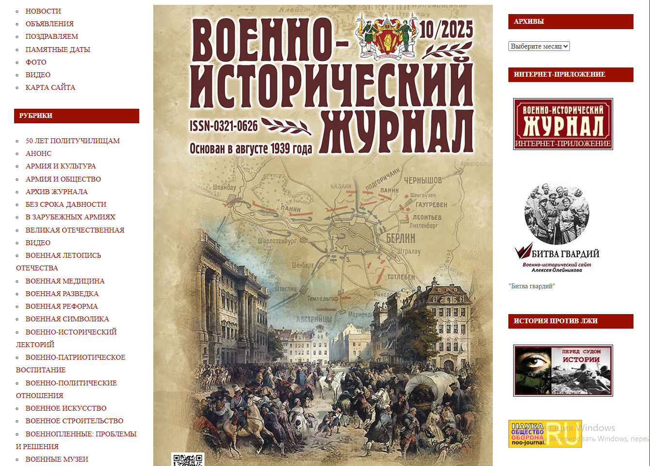 Ежемесячное научно-популярное издание Министерства обороны Российской Федерации, которое публикует статьи о военной истории, героях и событиях. Журнал может быть использован для организации тематических мероприятий и уроков.