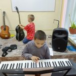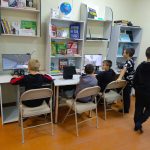 В центре развития «КЛЁПа» при Первомайской библиотеке дни проходят насыщенно: Костя играет песни «Лесник» и «Камин», а остальные ребята подпевают, сидя за компьютерами, за столами, с телефонами на сцене, кто-то играет в настолки или читает.
