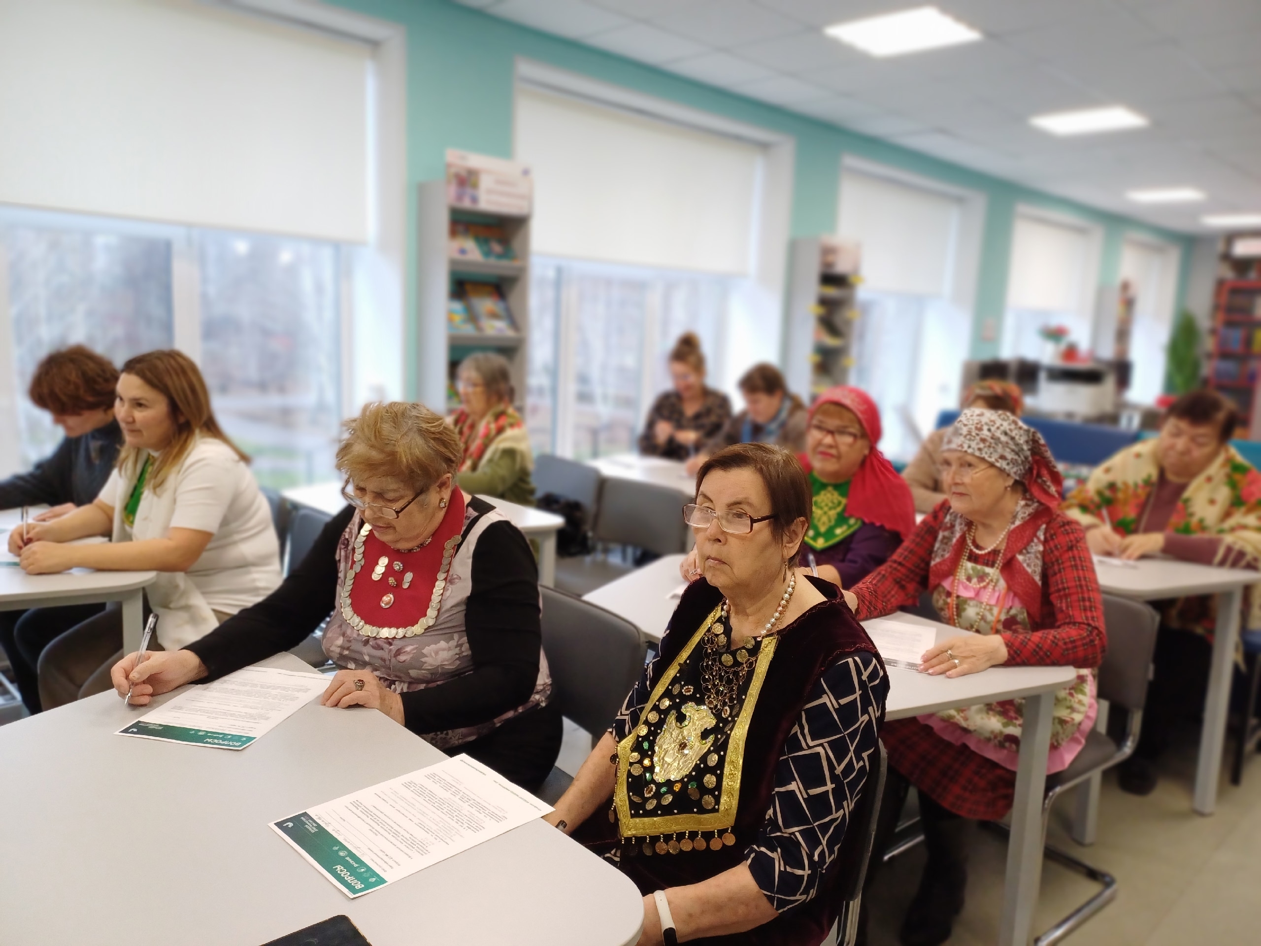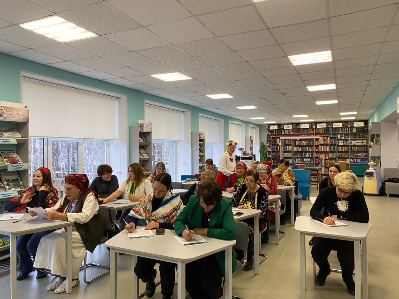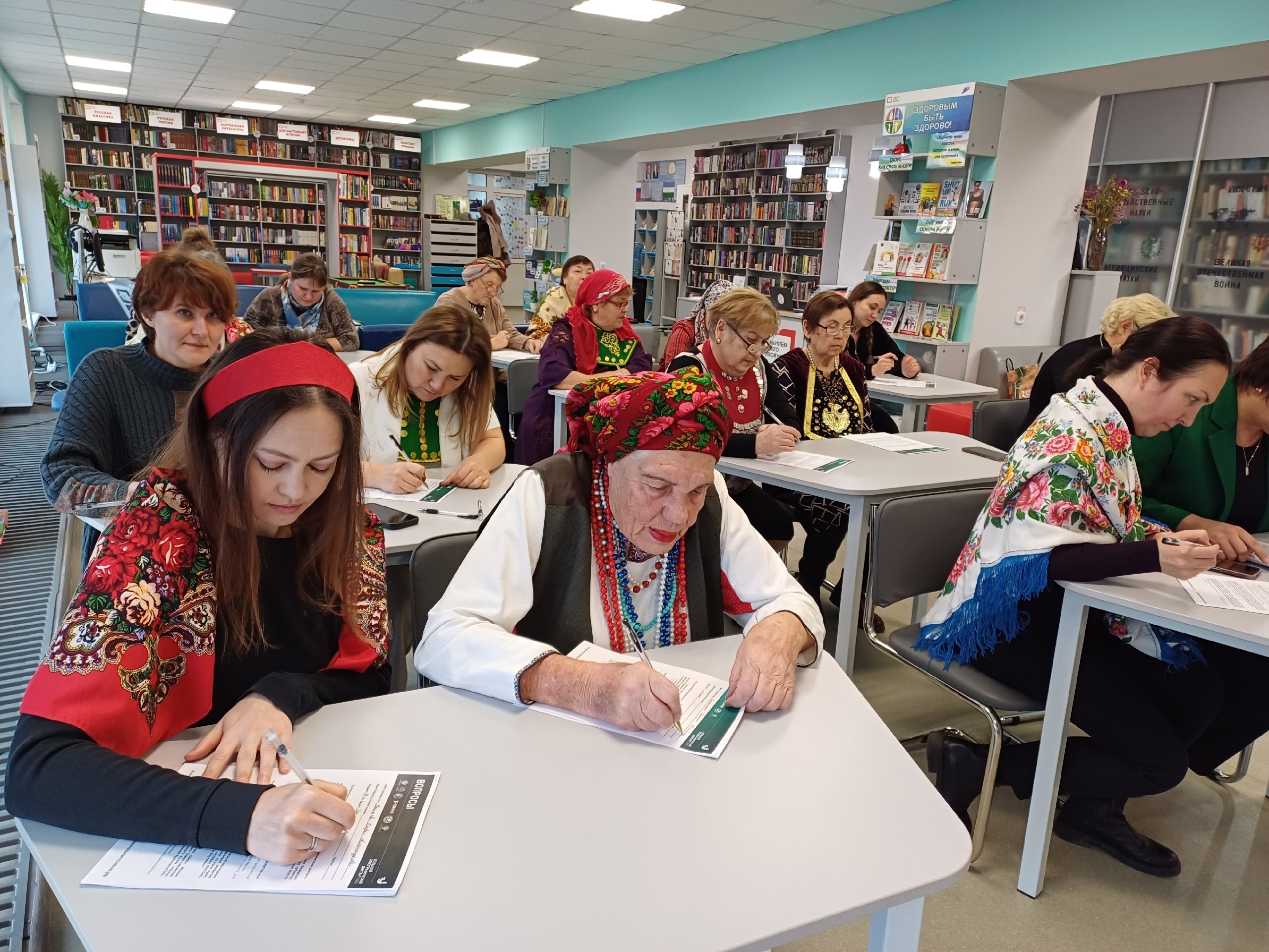 Многие участники пришли написать диктант в национальных костюмах или его атрибутах.