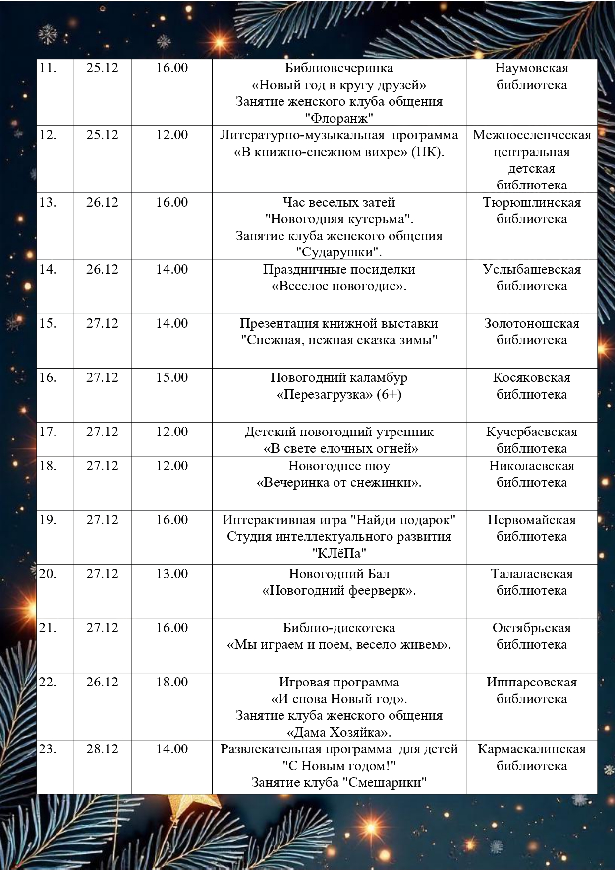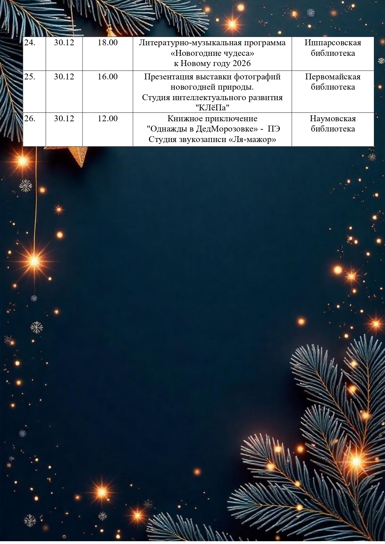 Расписание новогодних развлекательных программ декабря 2025 Опубликовано: 19.12.202525.12.2025 Автор: Редактор