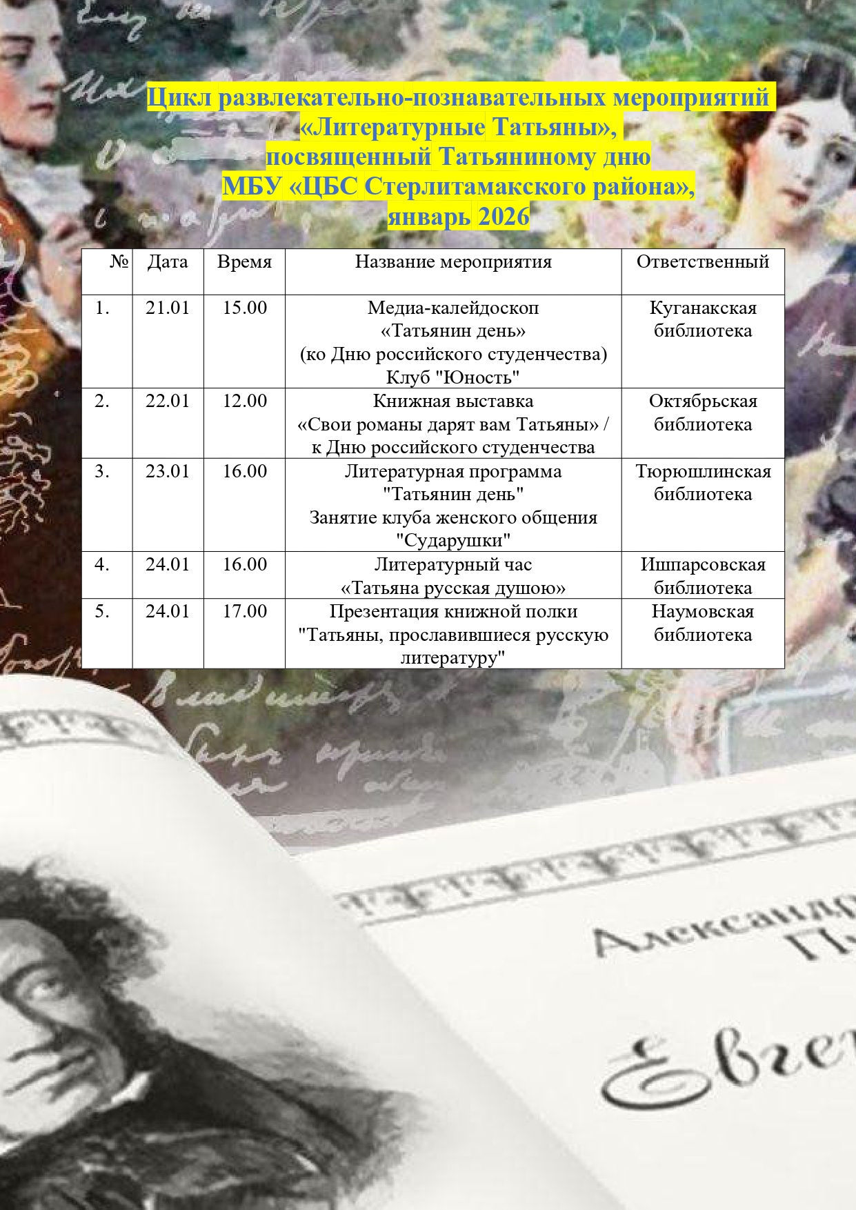 Цикл развлекательно-познавательных мероприятий «Литературные Татьяны» Опубликовано: 20.01.202619.12.2025 Автор: Редактор