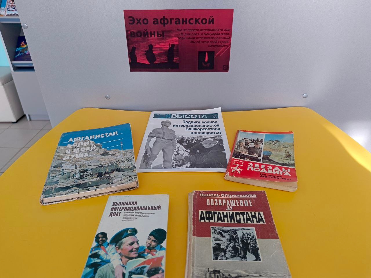 В библиотеках Стерлитамакского района оформлены книжные выставки » Эхо Афганской войны». Книги, представленные на выставке, как живая память событий минувших лет, дают читателю уникальную возможность “поговорить” с теми, чья юность оказалась опаленной жарким афганским солнцем. Самые искренние чувства вызывают произведения, написанные самими воинами-афганцами.